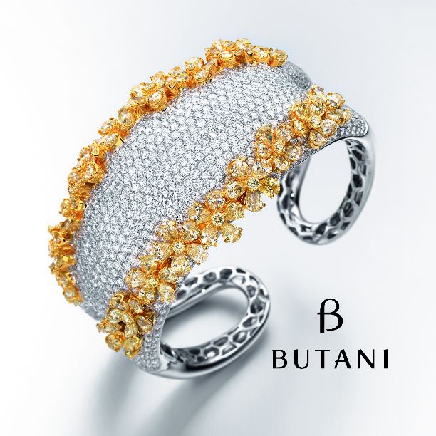 Some trends remain unchanged like a full diamond cuff with flower trimmings in fancy intense yellow diamonds #Butani #ButaniJewellery #diamonds