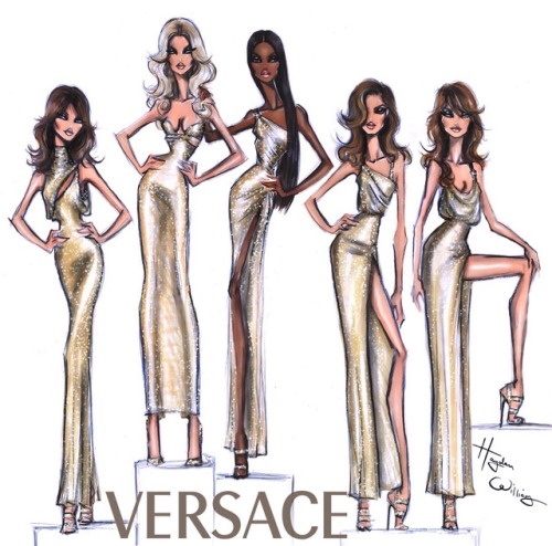 Versace SS18 reunion featuring 90s supermodels Carla Bruni, Claudia Schiffer, Naomi Campbell, Cindy Crawford & Helena Christensen by @haydenwilliamsillustrations