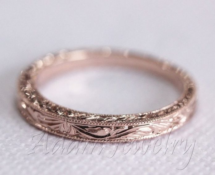 Antique Design 14k White Gold/ Rose Gold/ Yellow Gold Band Wedding Ring/ Band/ Promise Ring/ Engagement Ring by AdamJewelry on Etsy