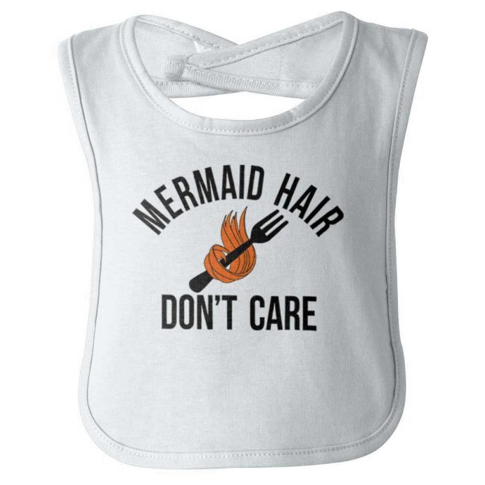 I’m just gonna say it: I’m a mermaid. I actually can’t believe that you didn’t notice. What with these fins for legs, mermaid tail, and this seashell bikini. Like, how is that OK for the dress code around this place? Not to mention my amazing and beautiful hair. How have you not noticed I’m a beautiful mermaid? I leave a trail of sand EVERYWHERE and this tan definitely isn’t just from a few days at the beach. Anyway, this Infant Baby Bib is for you real mermaids out there just like me. If you love the Little Mermaid and can’t wait to see the Ki