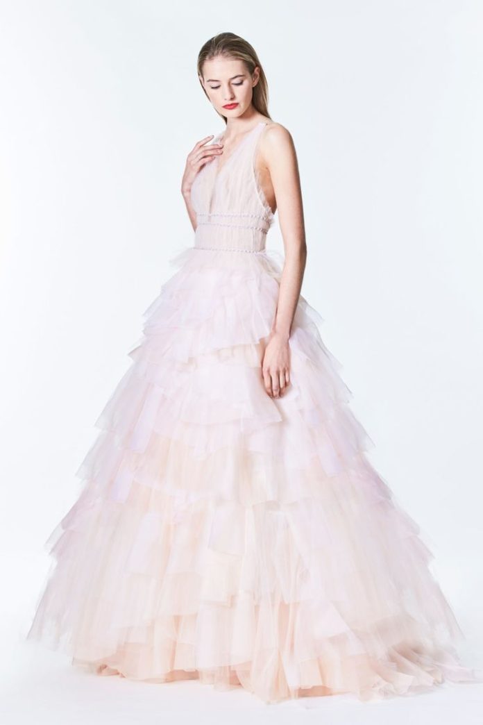 Blush ruffled Monique Lhuillier wedding dress: Photography: Courtesy Carolina Herrera – www.carolinaherrera.com/ Read More on SMP: www.stylemepretty…