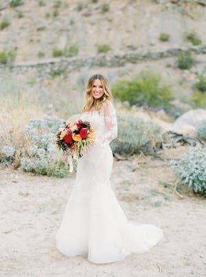 Long sleeve #weddingdress | PHOTOGRAPHY Shannon Moffit Photography | STYLING Pow Wow Design Studio | LINENS La Tavola Fine Linen Rental | EVENT PLANNER | Pam Olson | FLORAL DESIGN The Bloomin Gypsy