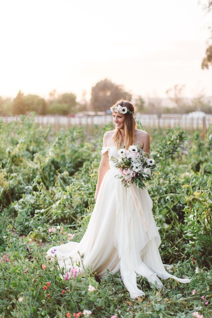 Silk chiffon off-the-shoulder wedding gown: Photography : Anna Delores Photography Read More on SMP: www.stylemepretty…