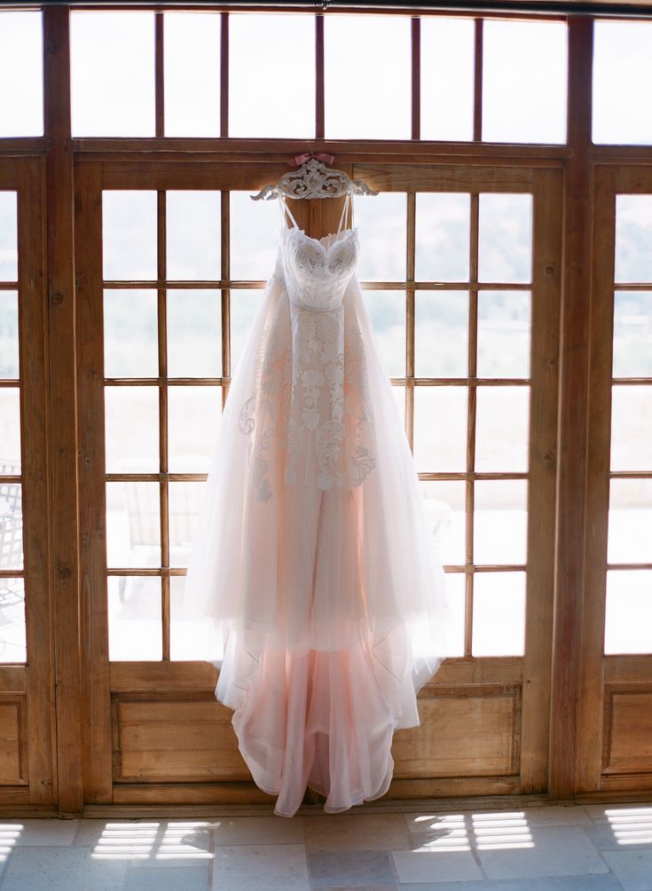 The Blush Tulle Layer on this Lela Rose Wedding Gown caught the sunlight in an amazing way! See the full wedding on #SMP today: www.stylemepretty… Photography: Michelle Beller | Wedding Design + Planning: XOXO Bride Events + Venue: Sunstone Winery and Villa | #Blush #WeddingDress #LelaRose #weddings