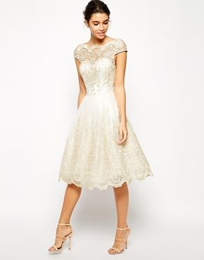 Seems like this would make a perfectly adorable wedding dress Chi Chi London Lace Prom Dress with Sweetheart Neck