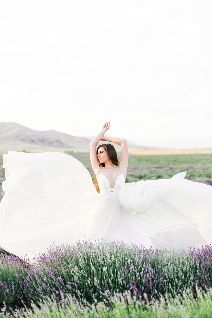 Ethereal Wedding Dress Inspiration in a Lavender Field #flowyweddingdresses #purpleweddingflowers #modernweddingcakes