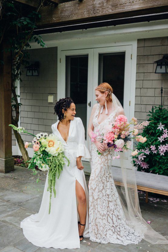 High Style; Luxurious Weed Wedding Ideas | Claire Eliza | High Herstory | Sarah Seven wedding dresses | Colorful oversized bouquets | Barbari herbal spliff bar | same-sex lesbian wedding inspiration