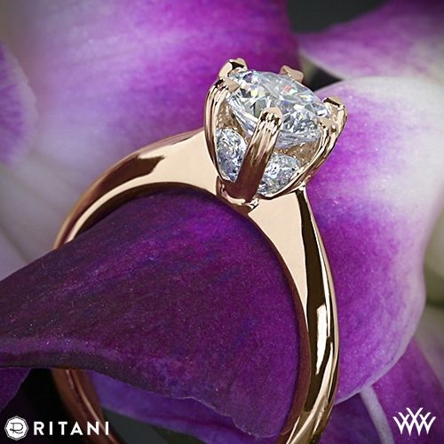 18k Rose Gold Ritani Setting Solitaire Engagement Ring. It features a gorgeous 6-prong head that holds microset Round Brilliant Diamond Melee (0.20ctw G/H VS)