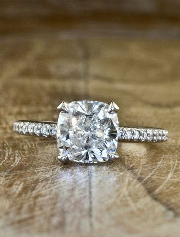 Ivy December 2011 gorgeous 1.8mm diamond band makes this ring delicate, feminine and everything a woman wants. Her platinum setting holds a precious cushion cut diamond with a perfect pillow top. 14k Rose, White, or Yellow Gold setting $1500 Platinum setting $2100 Center stone sold separately